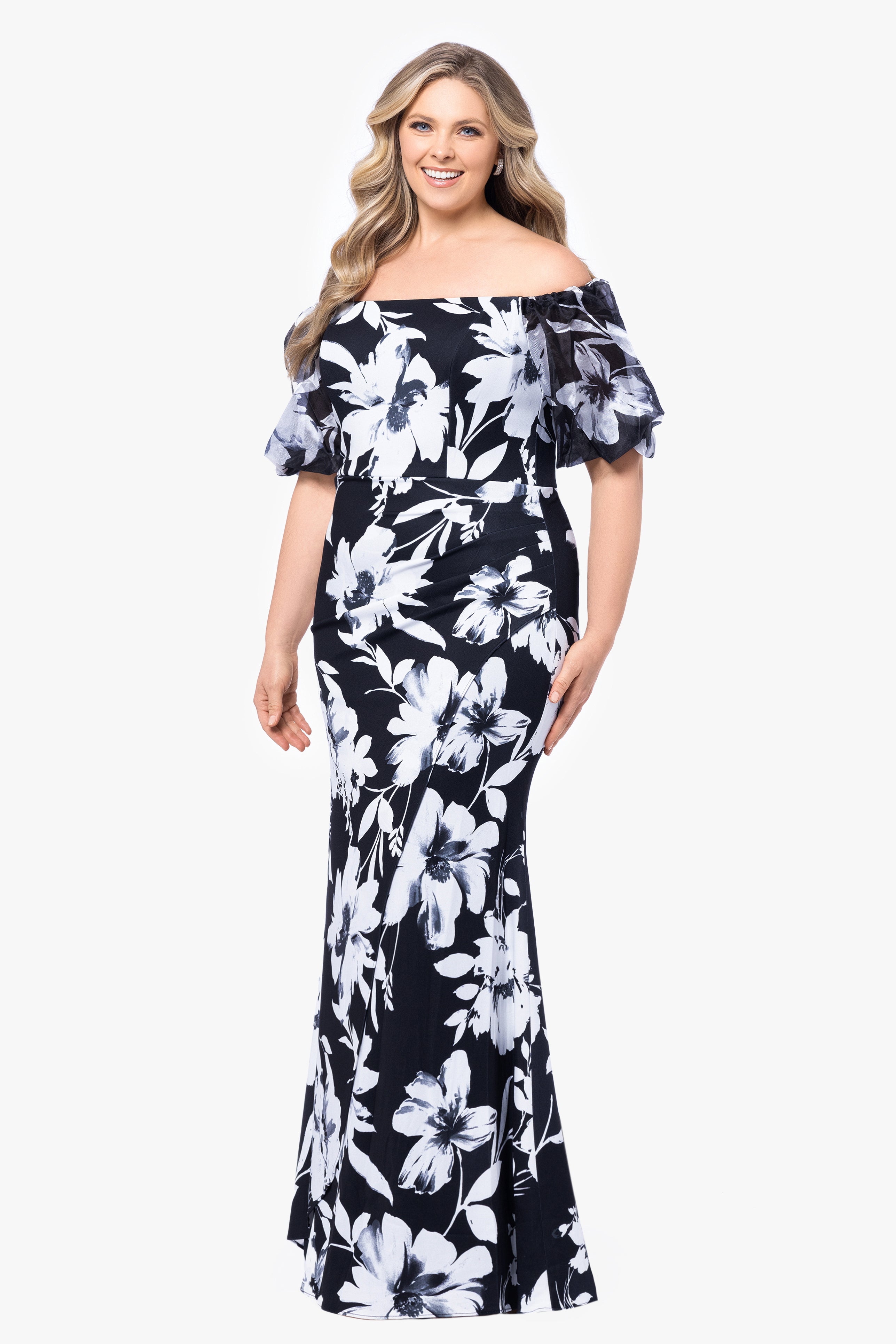 The Plus “Paris” Dress is an ideal choice for evening wear due to its elegant off-the-shoulder design, which exudes sophistication by showcasing the shoulders and collarbone. The vibrant floral print adds a touch of freshness and makes a striking statement, while the scuba crepe fabric ensures a flattering and comfortable fit that contours to the body. Perfect for formal events such as weddings, galas, or dinners, this gown combines timeless appeal with modern elegance, ensuring you look and feel stunning all evening.