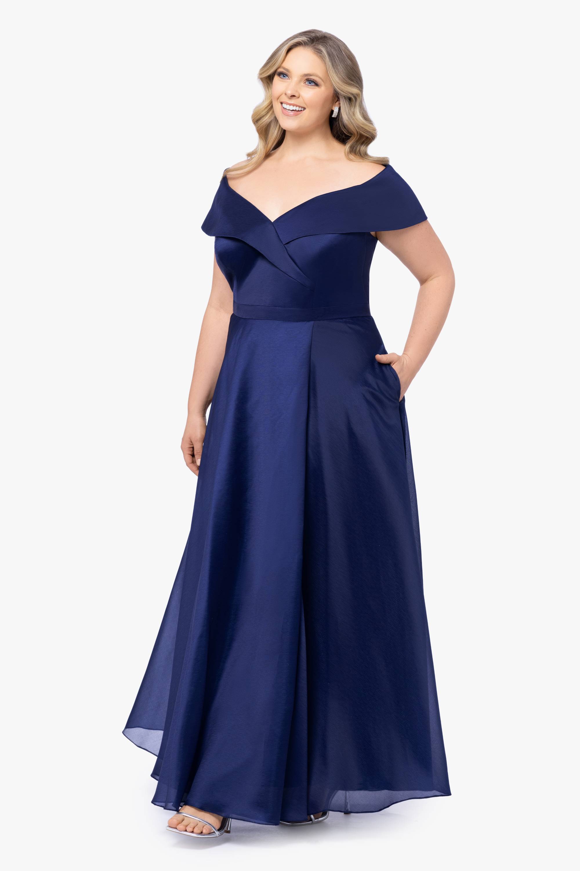 The Plus "Samaya" Dress epitomizes chic sophistication with its off-the-shoulder design, elegantly showcasing the neckline and shoulders. Fitted at the waist, it accentuates the curves while offering comfort and ease of movement. The A-line skirt gracefully flares out, creating a flattering silhouette that flatters various body types, and the addition of pockets adds both practicality and a modern touch. Ideal for formal occasions, this gown effortlessly combines style and functionality, ensuring you look and feel fabulous all night long.