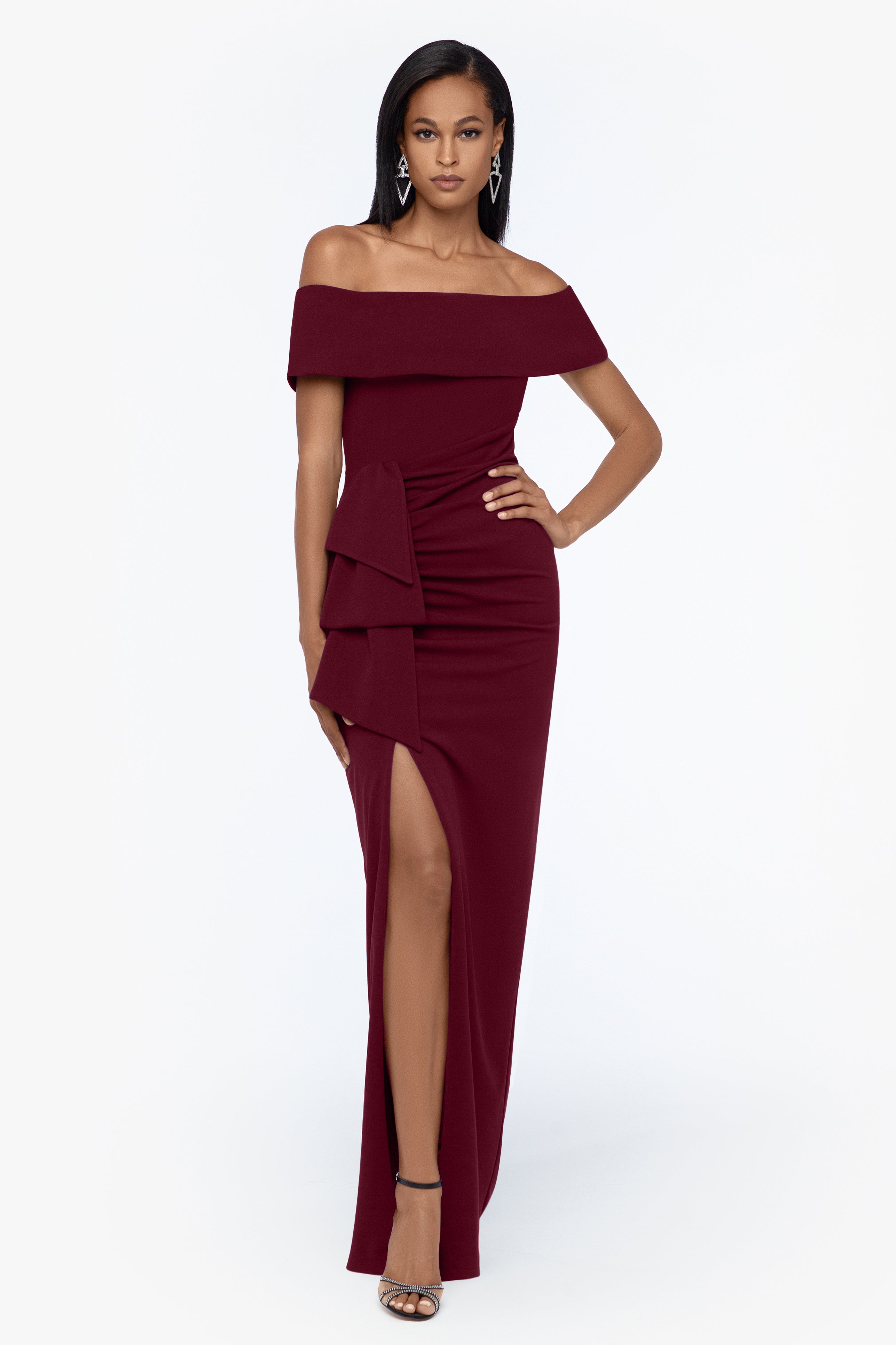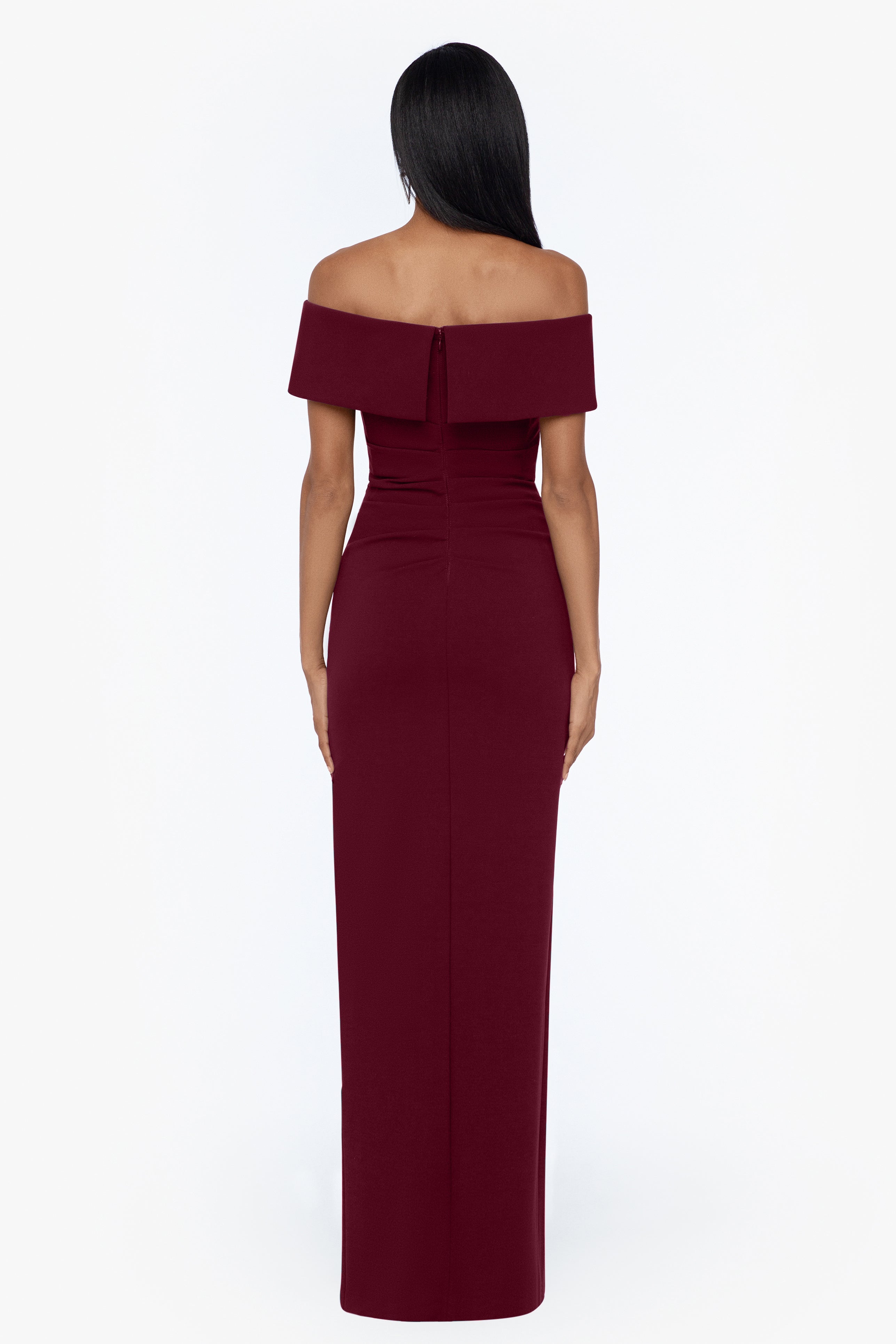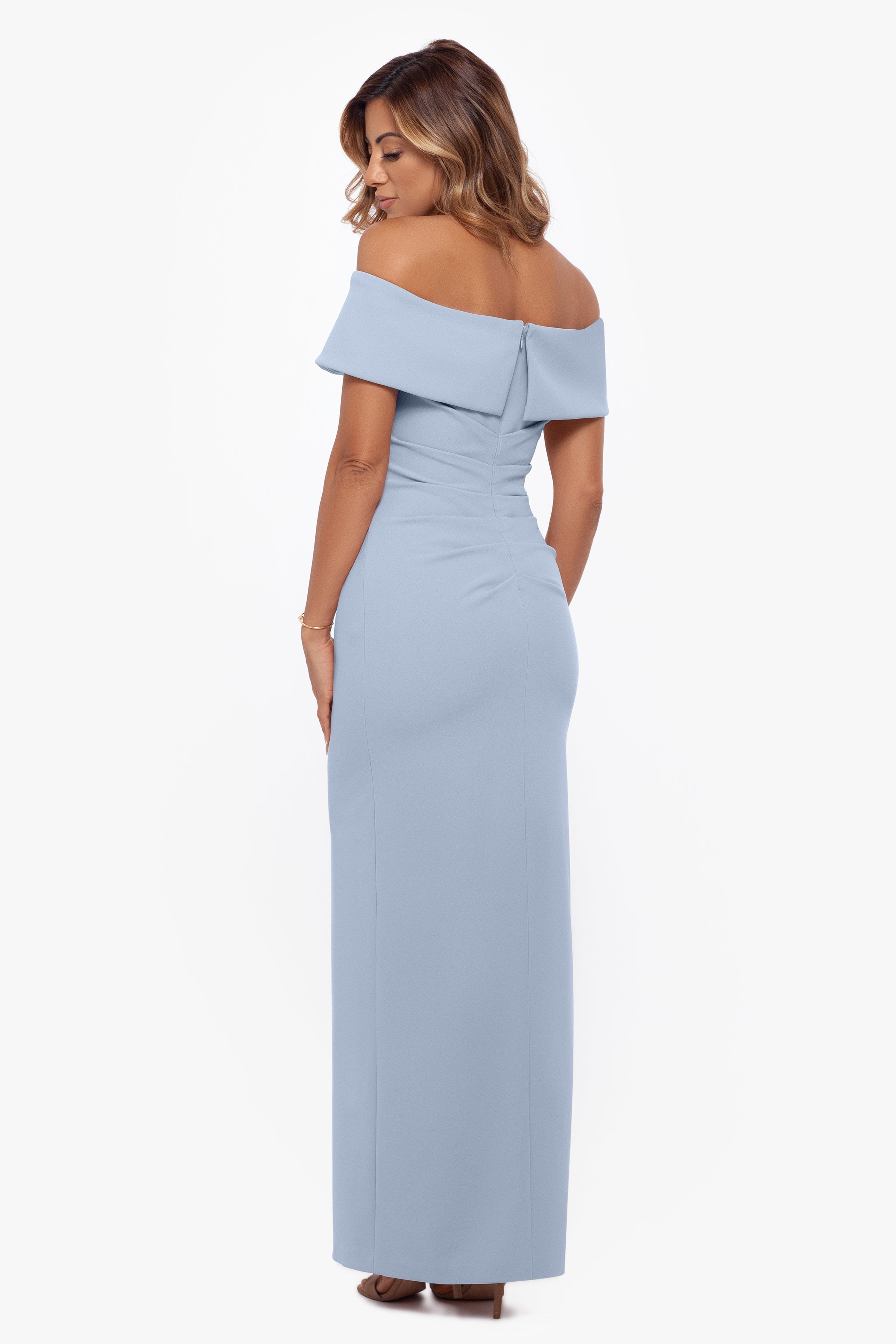"Camila" Long Off the Shoulder Scuba Crepe Dress