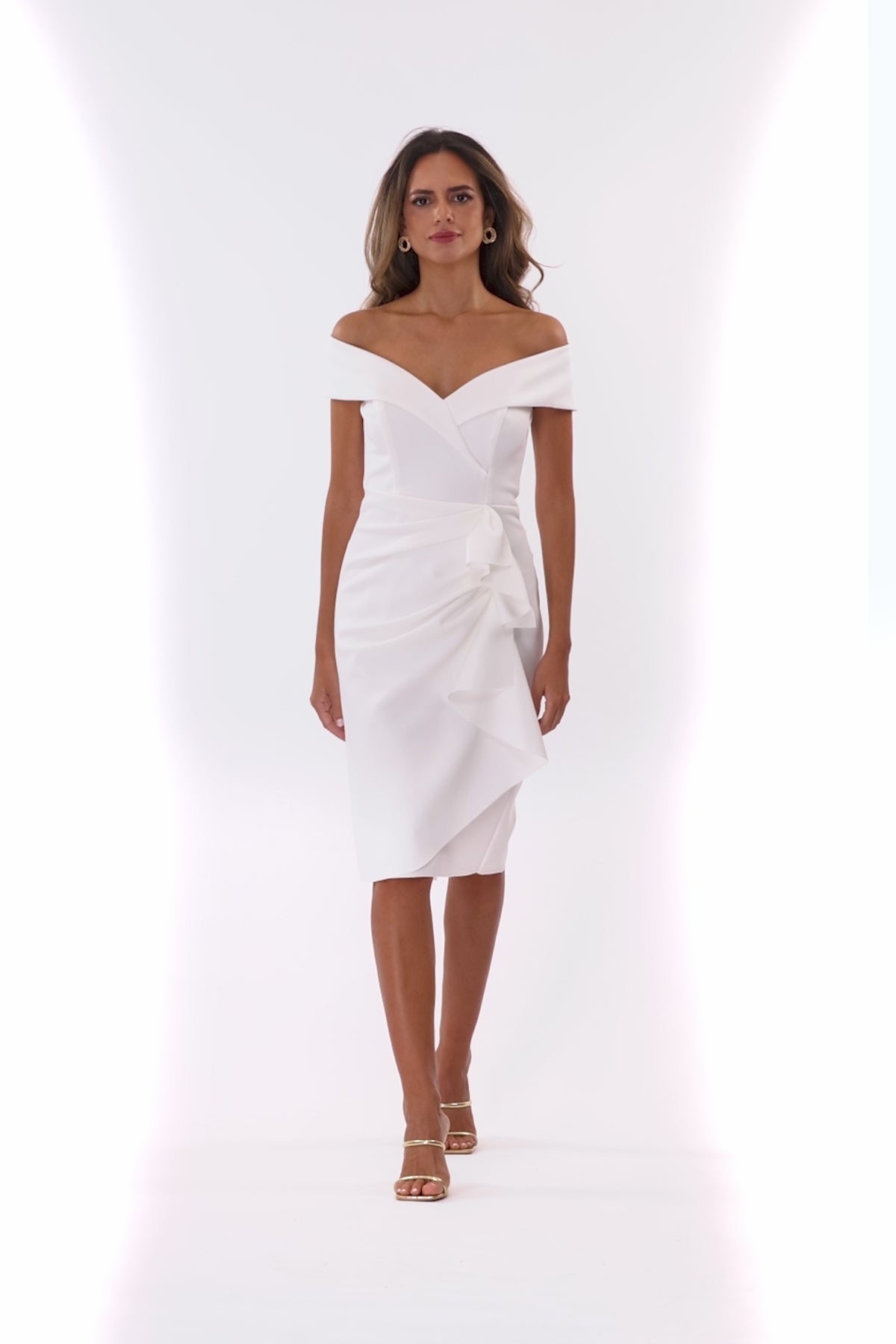"Jessie" Short Scuba Off the Shoulder Ruffle Dress