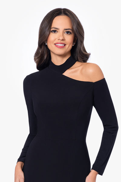 "Aletta" Jersey Knit Long Sleeve One Shoulder Cut Out Long Dress
