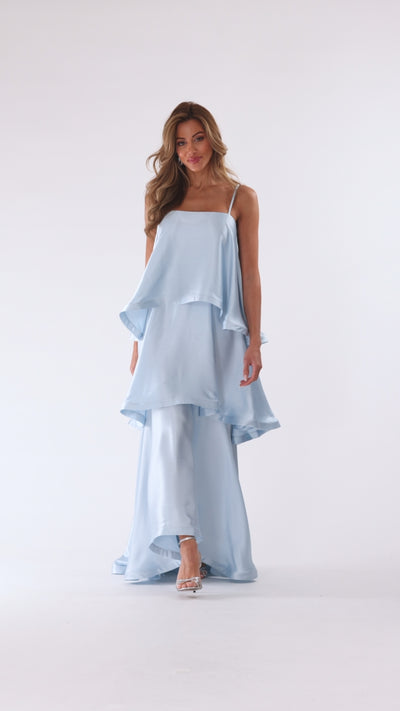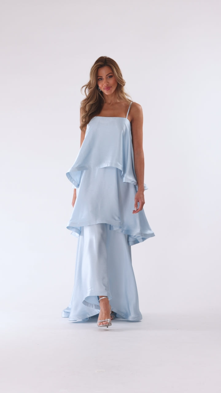 "Meadow" Satin Tiered Sphaghetti Strap Dress