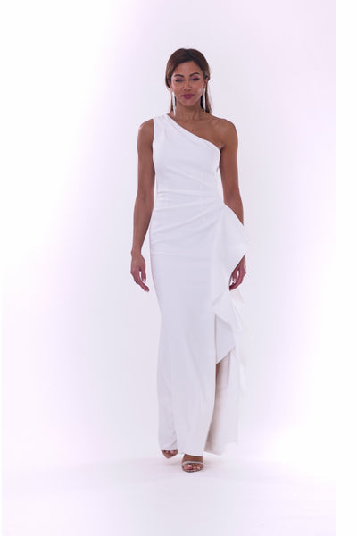 Petite "Flo" Long Techno Scuba One Shoulder Ruffle Dress