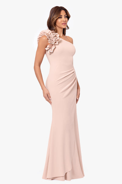 Petite "Ivy" One Shoulder Ruffle Scuba Crepe Dress