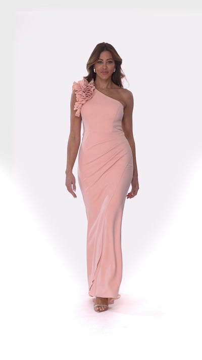 - Details: One Shoulder, Ruffle Detail on Shoulder, Ruched Side