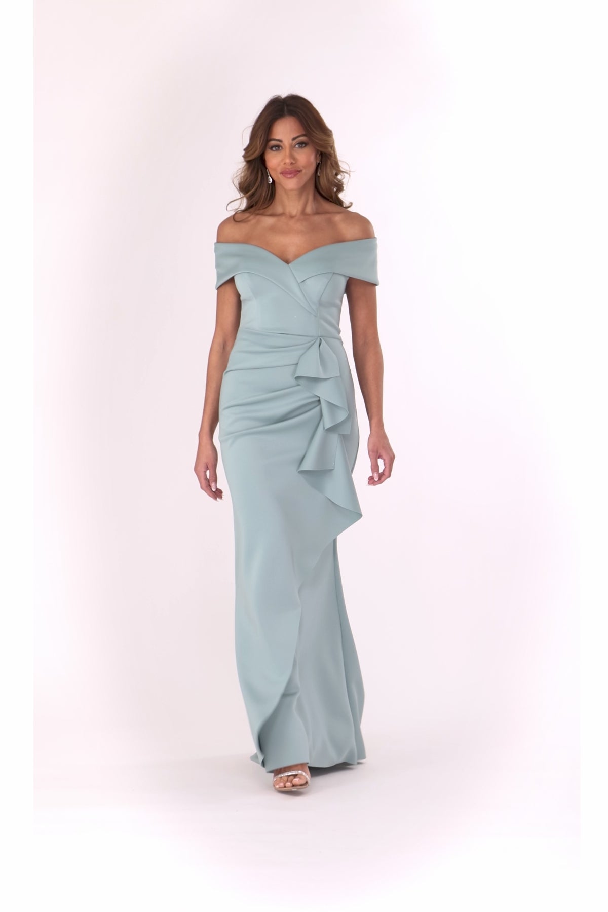 Upgrade your wardrobe with the "Patti" Long Off the Shoulder Scuba Crepe Dress. Made from high-quality Scuba Crepe material and fully lined for comfort, this dress features a hidden back zipper for a seamless finish. The off the shoulder design, folded top, and ruffle detail add a touch of elegance and sophistication to any occasion.