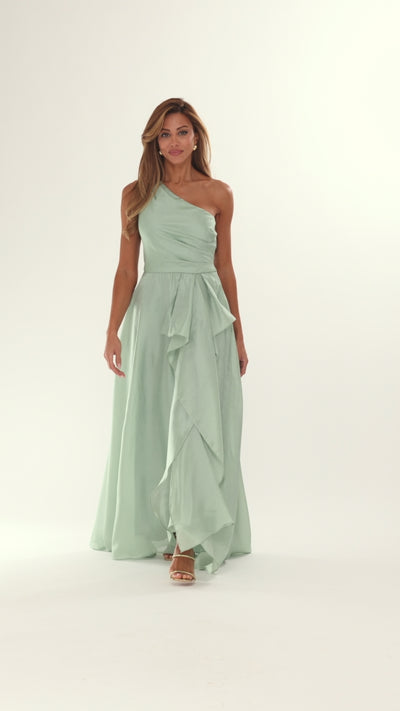 "Samantha" Organza One Shoulder Ruffle Floor Length Dress