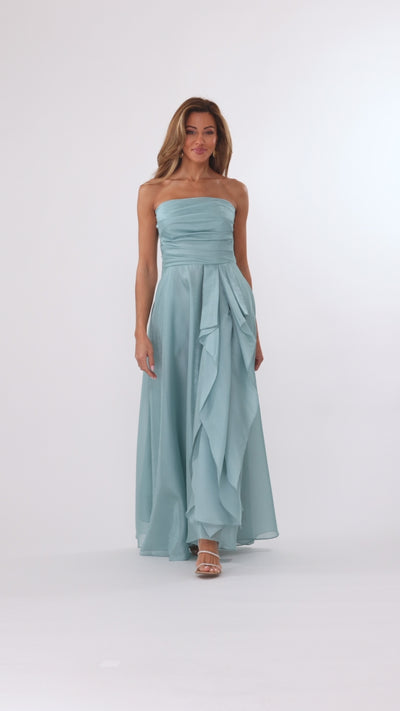 "Sasha" Organza Strapless Ruffle Floor Length Dress