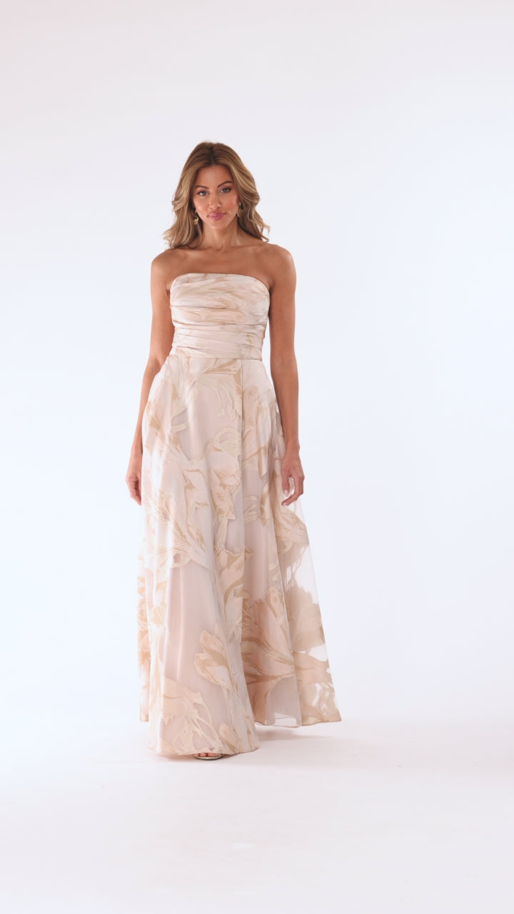 "Shania" Jacquard Strapless Floor Length Dress